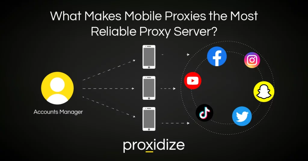 Why are mobile proxies considered the most reliable proxy server for managing your social media accounts? Mobile proxies provide a competitive edge over regular proxies, including datacenter proxies and residential proxies. One key advantage is the use of a pool of IP addresses from mobile devices, making it harder for social media platforms to detect and block proxy usage.